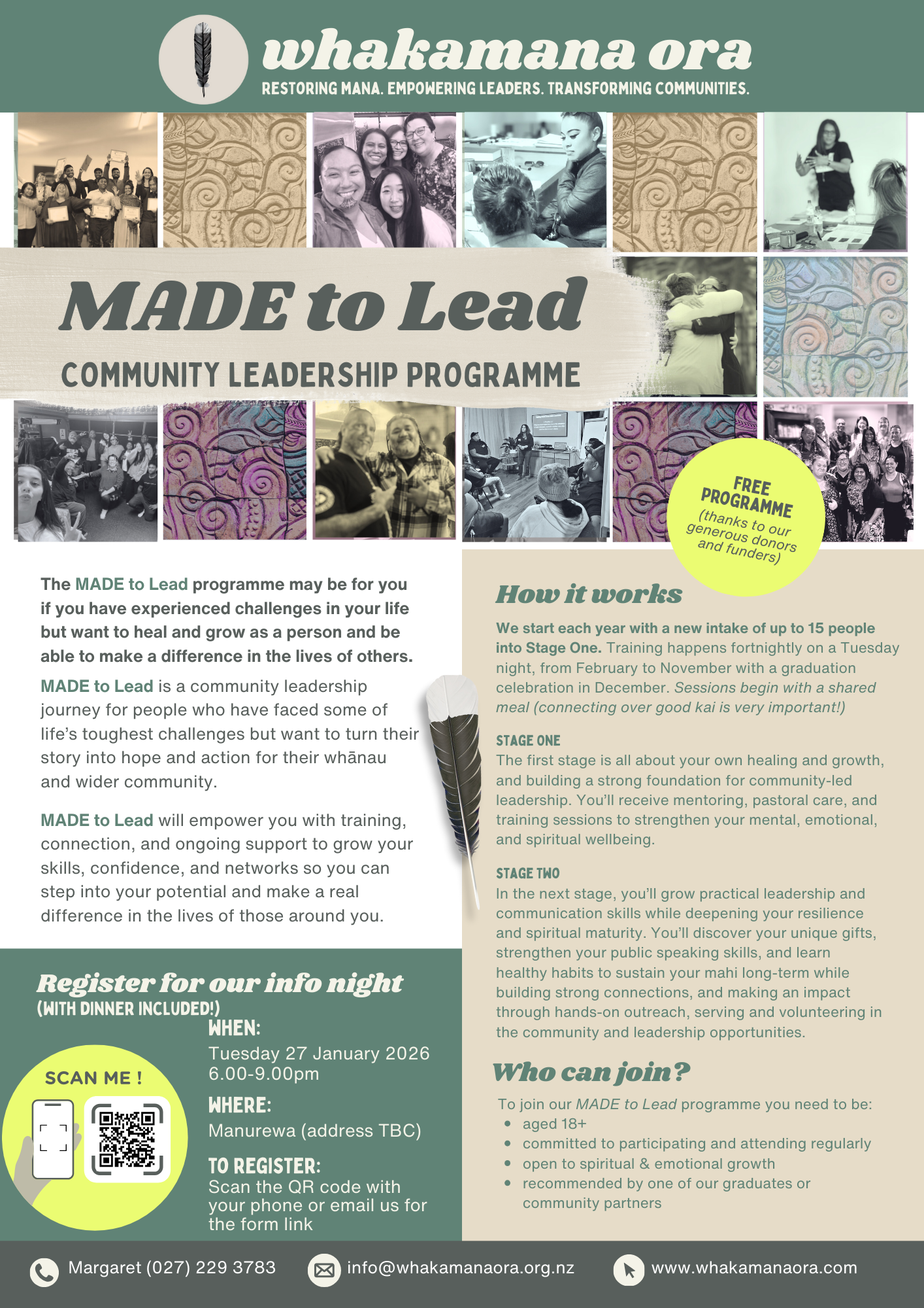 MADE TO LEAD is a community leadership journey for people who have faced some of life’s toughest challenges but want to turn their story into hope and action for their whānau and wider community.