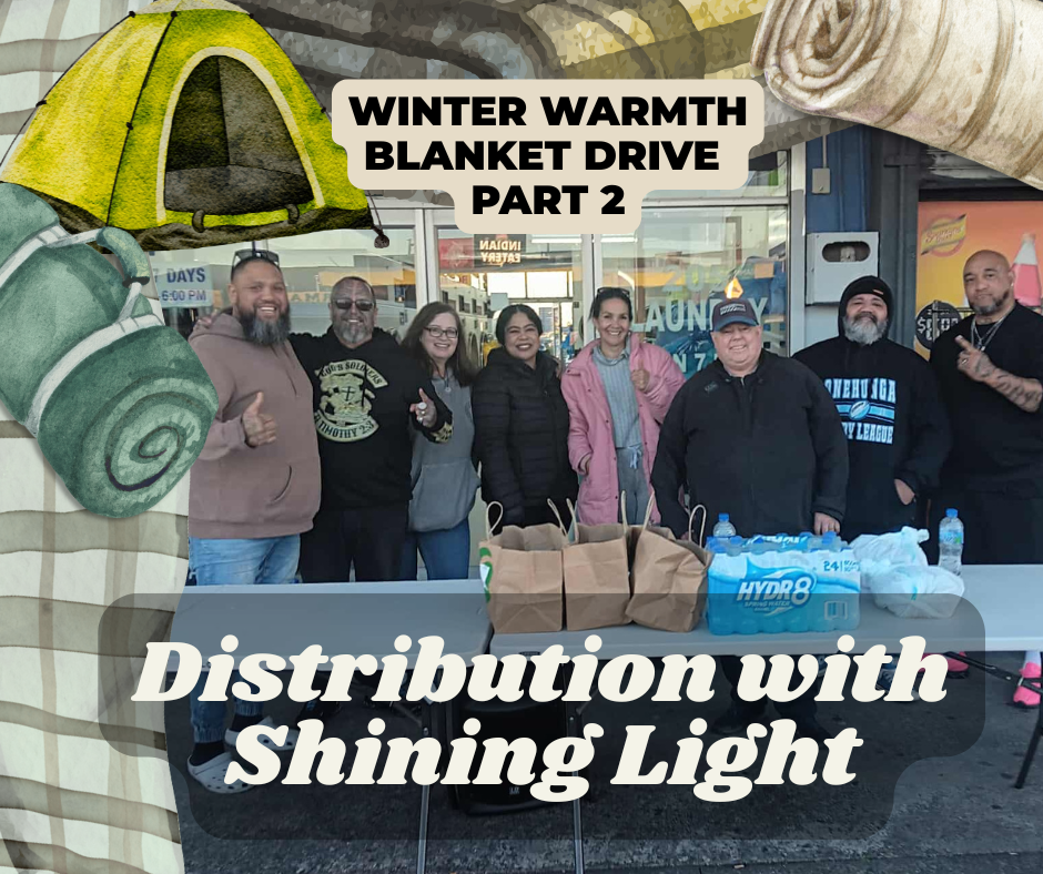 We had absolutely stunning weather when our little group of volunteers stacked up the ute with our packs ready for distribution in Manurewa in collaboration with Shining Light Community Trust. They are down behind the McDonalds in Manurewa every Thursday from 4pm-6pm giving out hot meals, food packs and aroha. It was a privilege to get to join them in their mahi, and be able to put our “Warmth for Winter” packs into the hands of 25 people who are sleeping rough.